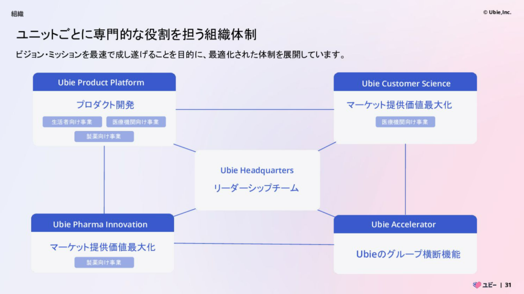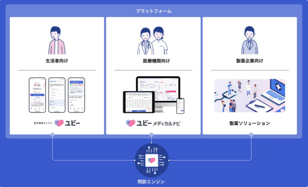 We also provide support to healthcare professionals through the medical institution service package Ubie Medical Navi, which helps improve the quality of medical care and reduce their workload. Additionally, we provide information to consumers and medical institutions that contribute to disease and treatment awareness, which in turn supports early and appropriate medical consultations and medical practices. By connecting these stakeholders in the healthcare industry through the platforms of Ubie and Ubie Medical Navi, we aim to lead the entire industry towards appropriate medical care and improve its quality.