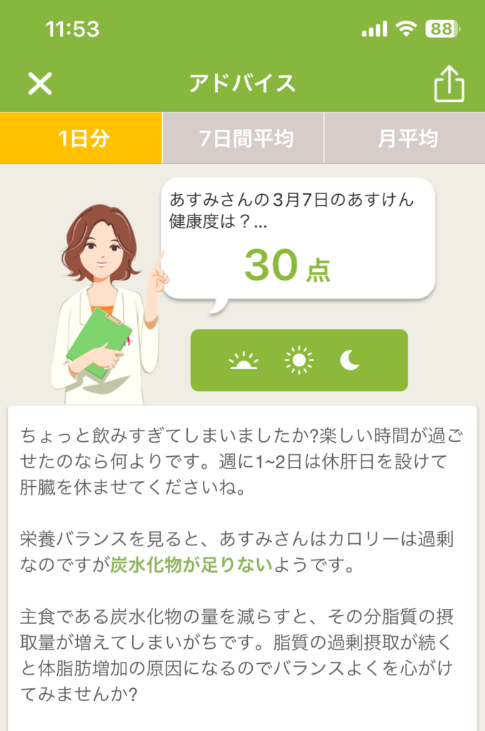 We have mechanisms that do not allow setting unrealistic goals, such as excessively low BMI, extreme weight loss pace, or imbalanced PFC ratios (protein, fat, carbohydrate intake ratios). We also set lower scores for Asken’s health score (a comprehensive score created by Asken based on meal and exercise records) in cases where calorie intake is too low.