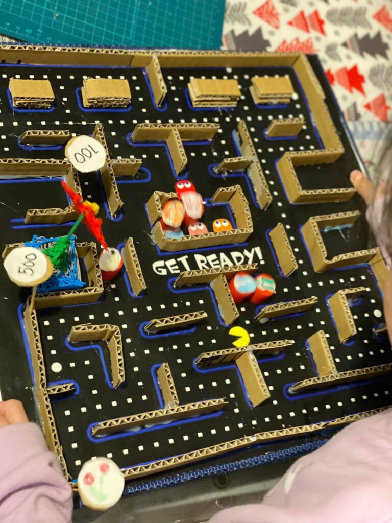 筆者の娘が5歳のときに試行錯誤しながら、手を怪我しながらも作った紙製パックマン