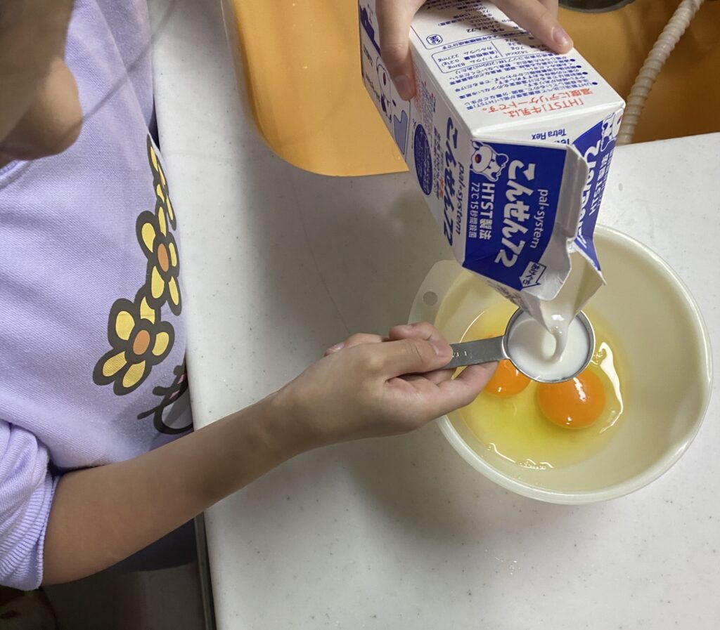 筆者の娘が5歳のときに一人でスクランブルエッグを作り始める様子。どんな料理人にも、この初めての瞬間があったハズ