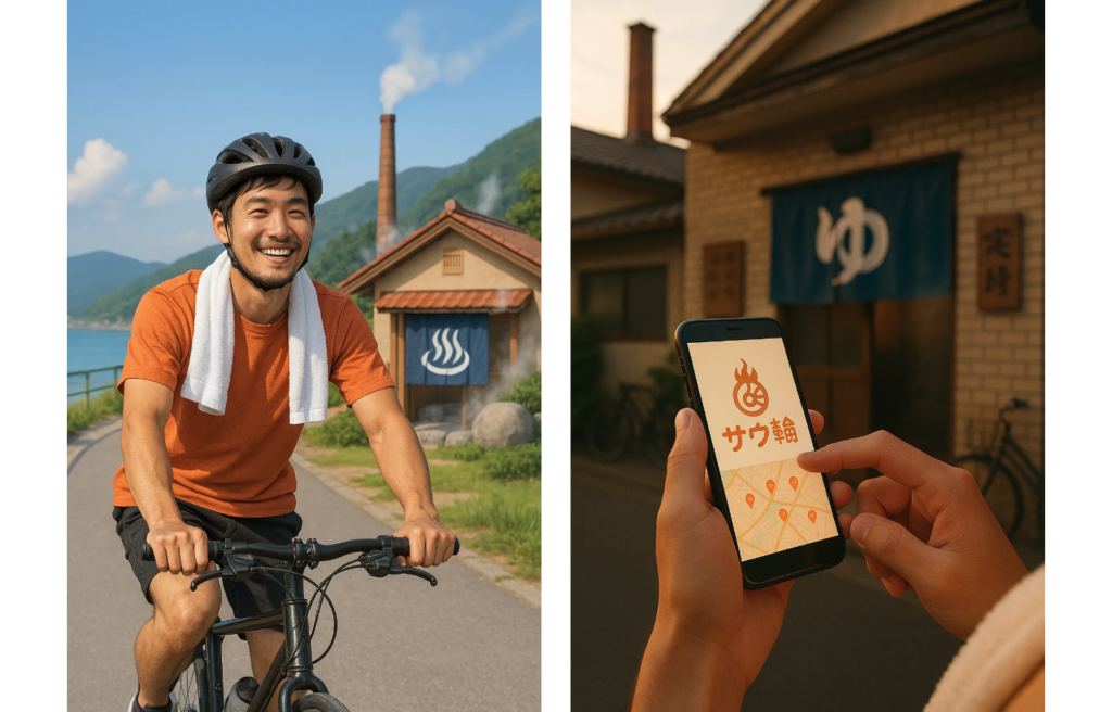 そんな中とあるメンバーが、「サウナ」と「自転車」、彼のふたつの趣味を掛け合わせたアイディアを持ってきました。「この世界で自分だけ」というには少々ありきたりかもしれません。両方を嗜んでいる人も少なくないでしょう。しかし、こだわりすぎて思考が停滞していた私たちに、このアイディアは雷のように鮮烈に初心を思い出させました。
