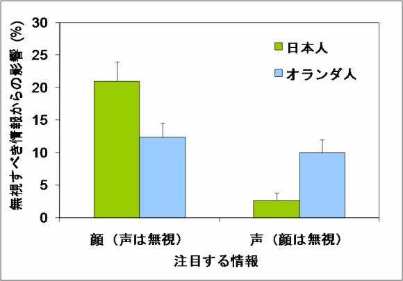 「日本人は情動を声から判断する傾向が非常に強く、一方でオランダ人は顔の表情に委ねられる傾向が強い」