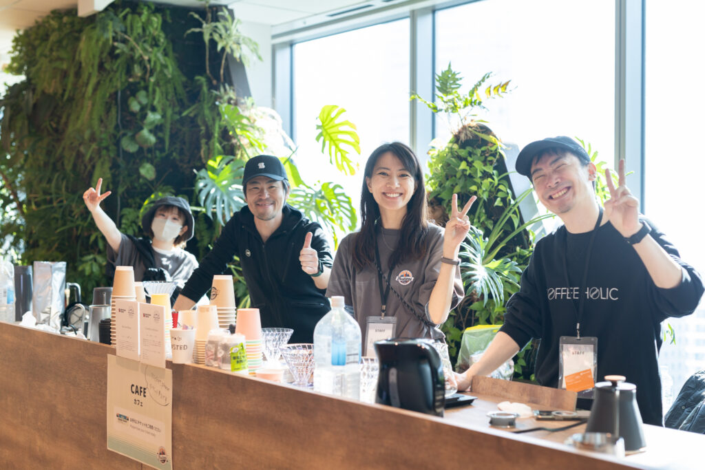 例年うちのイベントのコーヒー環境はコーヒー好きデザイナーのはるたんがCoffee Guyとしてプロデュースしてくれていたのですが、今年は都合がつかず。そこで新たなCoffee Guyとして高見さん、坪内さんががっつり引き継いでくれて、今年のカフェをプロデュースしてくれました。高見さんはデザイナーとしての本業の傍らMounTown Coffee Roastersという屋号でコーヒー豆の焙煎や販売をしていて、今回のためにSpectrum Blendなる豆も用意してくれました!ちなみにハンドドリップはもちろん、ポットに入ったテイクフリーのコーヒーもこちらだったので、贅沢でした…。どちらも激ウマ。はるたんが築き上げてきたうちのコーヒーの評判を更に押し上げてくれた最高のカフェでした!