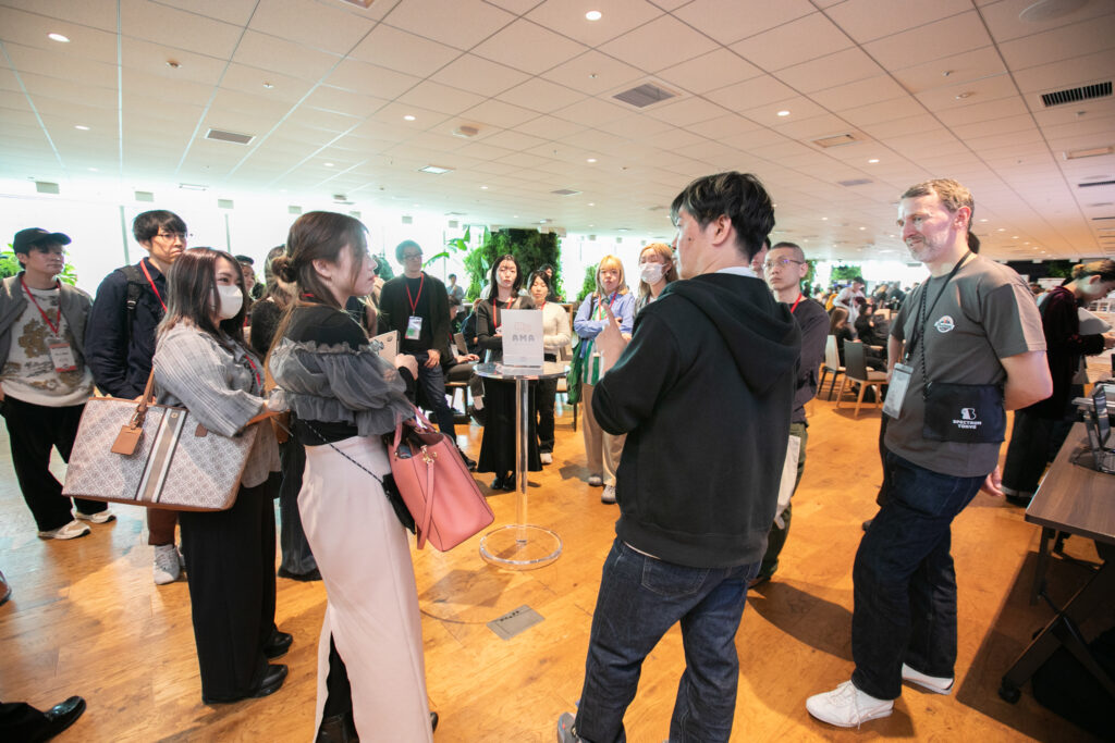 我々自身も体験のデザイナーとして、どうしたら対話しやすい空気づくりができるかを毎年試行錯誤しています。美味しいご飯や飲み物、いい感じの音楽などの環境づくりもそうですし、登壇と必ずセットにしているAMA(Ask-me-anything)セッションやインタラクティブなスポンサーブースなどもそうです。
