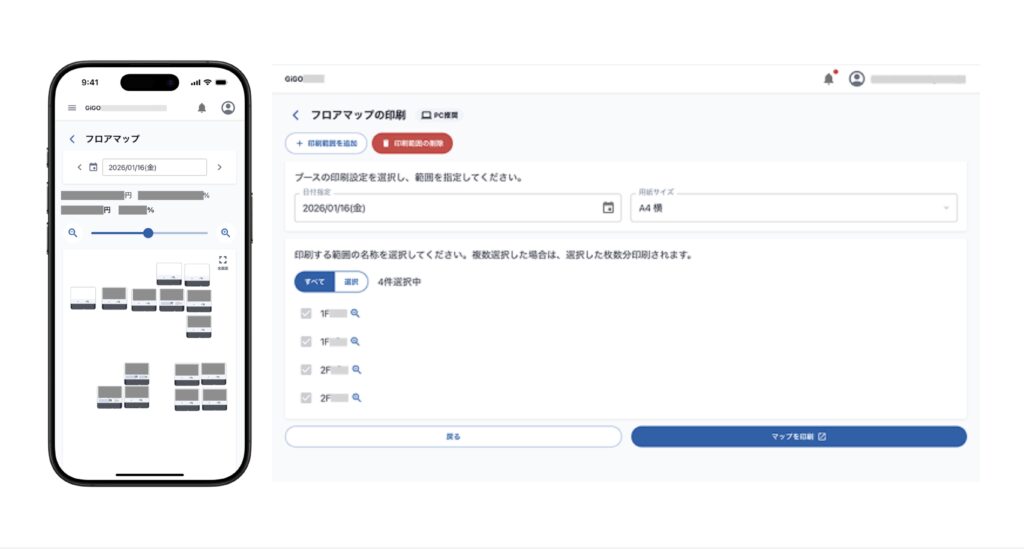 pony:一例として、フロアマップ機能をご紹介します。「GiGO NAVI」では、当初フロアマップをスマホで閲覧しながら作業することを想定していました。しかし実際に現場へヒアリングを行うと、マップを紙に印刷して使った方が業務を進めやすいという声が、複数の店舗から挙がりました。