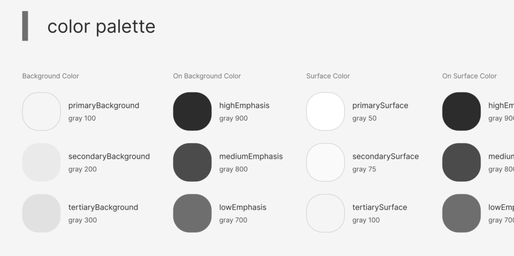 大村:DMMではダークモードへの対応を前提としているため、まずは大きくBackground(背景)とSurface(表層)の2軸から詰めていきました。
