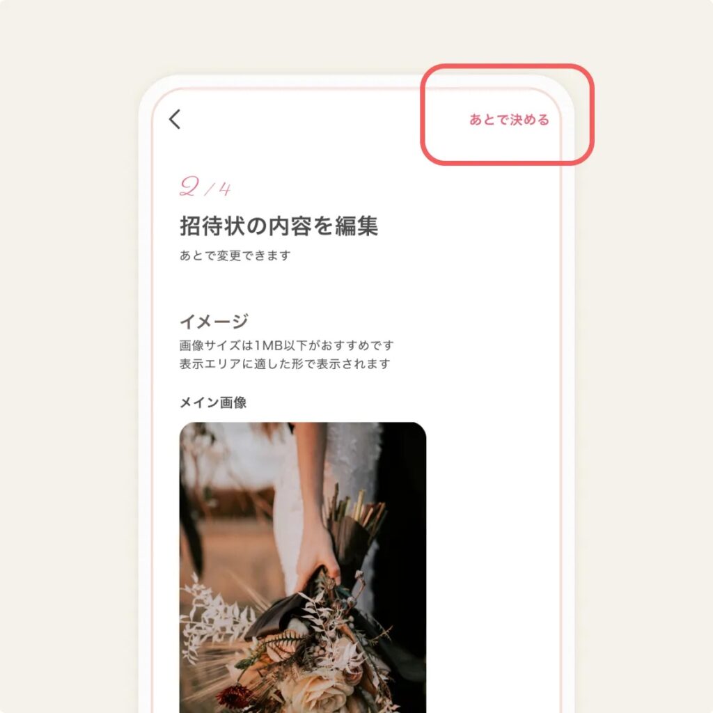 招待状に必要な情報の入力は想像以上にたくさんありますし、手紙の文面から会場の住所や電話番号など間違えられない情報ばかりで、気を張る作業です。その工程をステップを刻むことで入力しやすくしました。