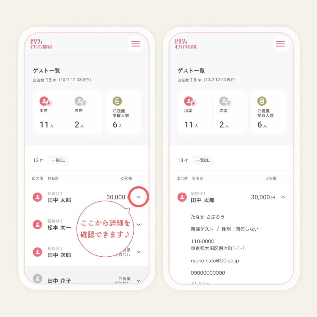 川端:私が思う一番のメリットは、カップルと会場で常に最新の参加者リストが共有されていることです。挙式準備の際に一番大変だと感じたのは、プランナーの方とのやりとりでした。呼びたいゲストのリストから、どのゲストが出席または欠席かの確認のためエクセルファイルでやり取りしたり、テキストで指示したりと混ざることもあって、最終的に同じリストを見て話ができているのか不安に思うことがありました。