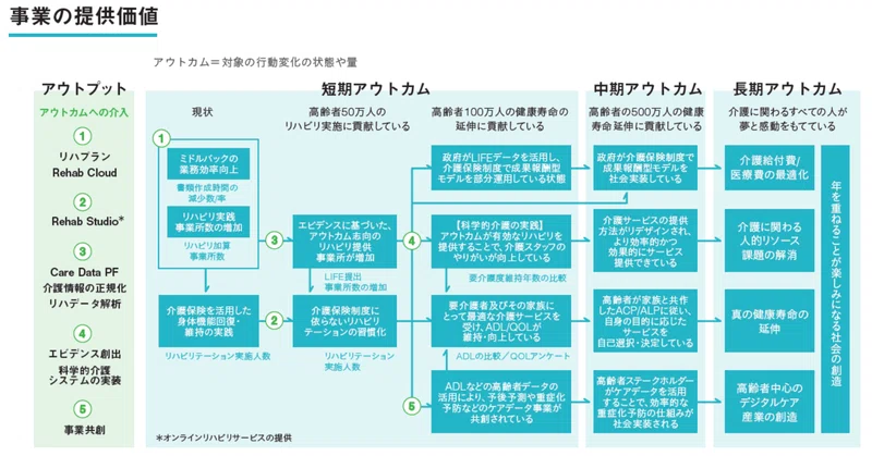 特長は、煩雑な書類作成業務を効率化するだけでなく、データやAIを駆使してリハビリを科学的に行うことでケアの質も高め、高齢者を元気にすることを目指している点です。それこそが、私たちが目指すアウトカムだと考えています。