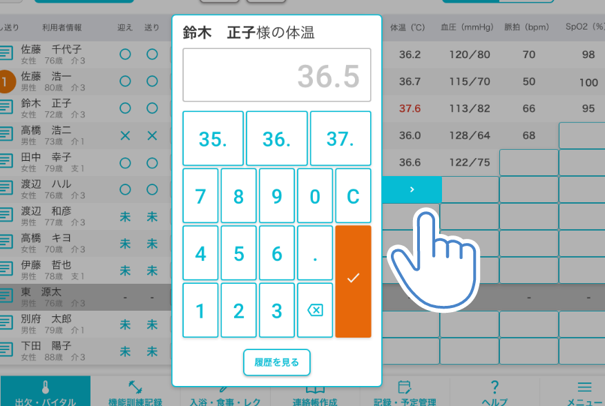 若林:分かりやすいのは「35.」「36.」「37.」というボタンがついた体温入力のテンキー画面でしょうか。