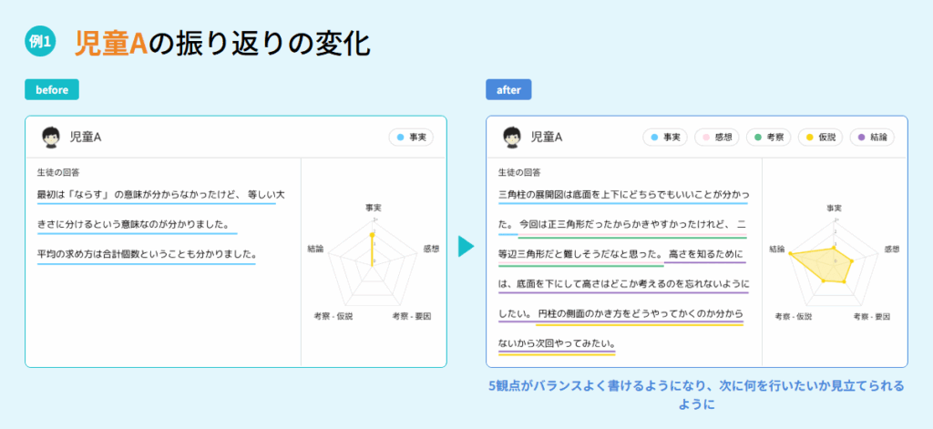 「振り返りAI分析」を活用することで、子どもたちの回答にも徐々に変化が